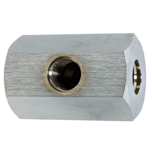 4 x 1/4 BSP utganger. Forkromet messing blokk 50 x 32 mm
